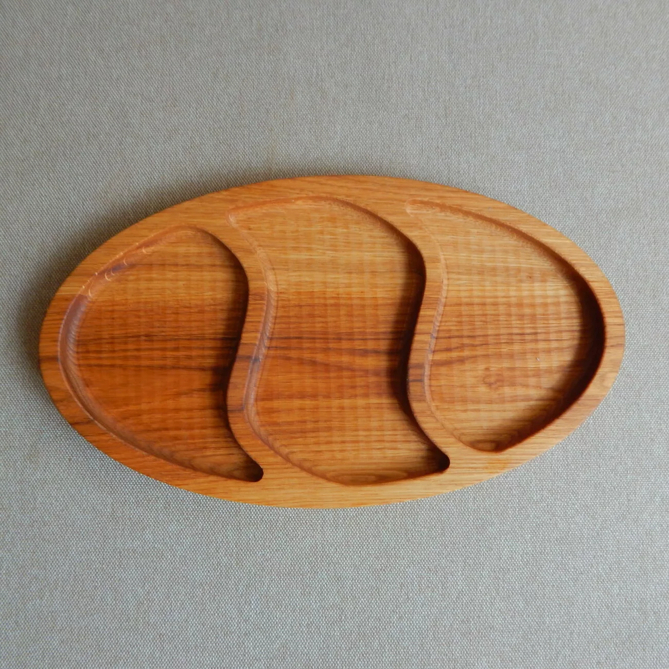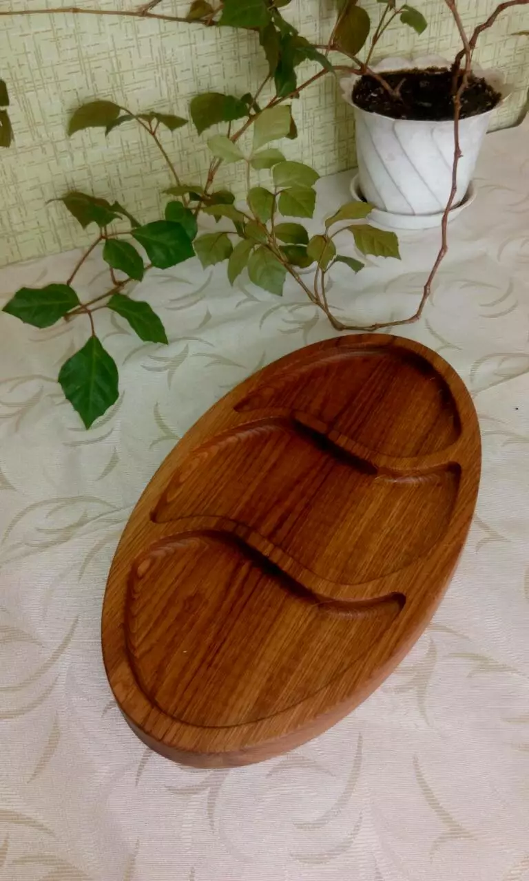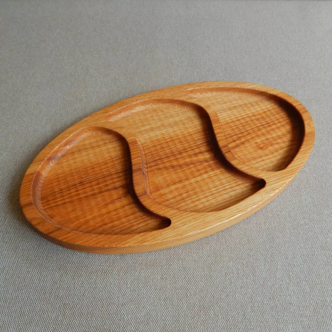 Для сервировки как холодных, так и горячих блюд. Тарелку можно использовать для подачи мясных и рыбных блюд, а также для подачи овощей и фруктов. Секции фигурные. Смазанная льняным маслом.